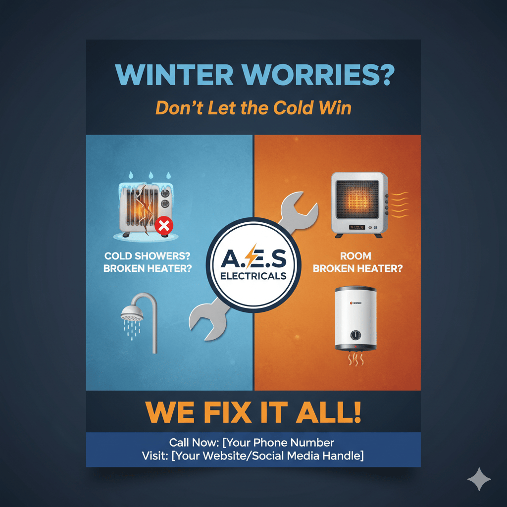 "Stay warm with A.E.S Electricals – Your heater & geyser specialists."